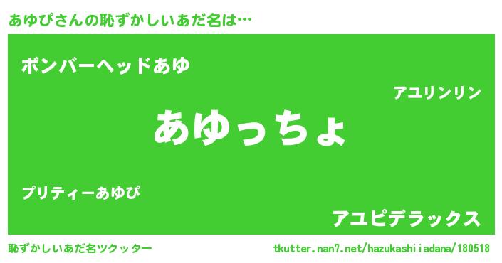 | 意味不明あだ名 | 『あゆぴフォーエバー』『自称あゆぴ』 |