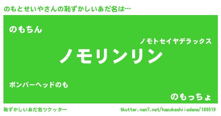 | ヘコむあだ名 | 『のもぷりん』『のもとせいや(爆)』 |