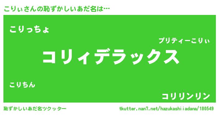 | 可愛いあだ名 | 『こりうちぇる』『こりちー』 |