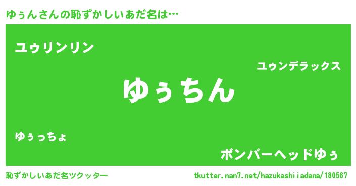 | ヘコむあだ名 | 『ゆぅん(震え声)』『ゆぅ太郎』 |