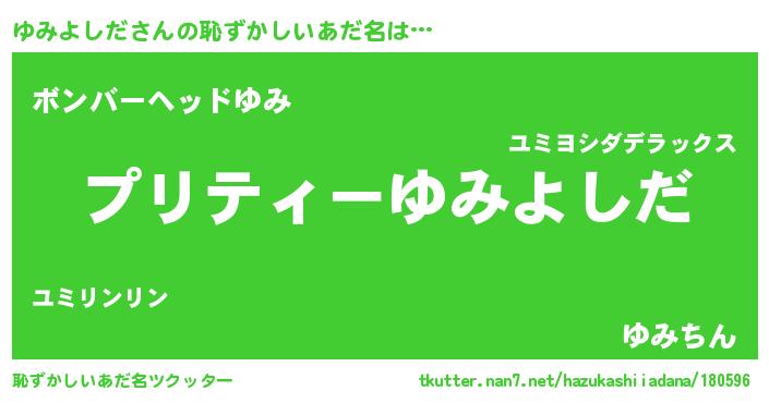 | ヘコむあだ名 | 『ゆみっふぃ~』『ゆみよしだ(笑)』 |