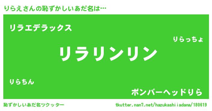 | ヒーロー風カッコイイあだ名 | 『暗黒騎士リラ』『究極戦士リラエ』 |