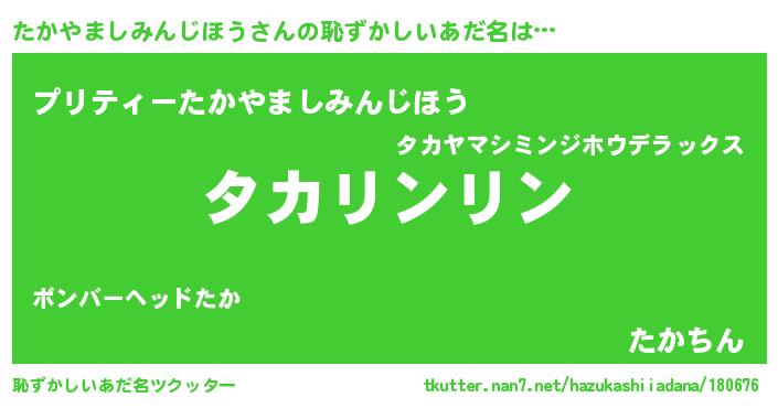| 伝説のあだ名 | 『解き放たれた遊び人たかやましみんじほう』 |