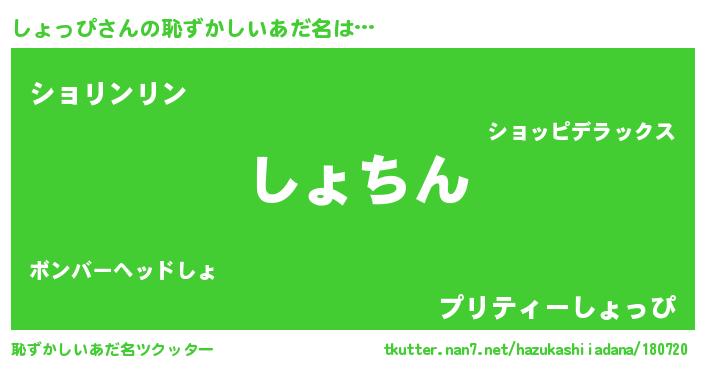 | 意味不明あだ名 | 『永久保存しょっぴ』『ペロリンしょっぴ』 |