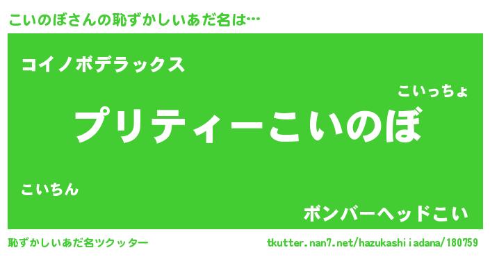 | 胡散臭い通販商品みたいなあだ名 | 『億万長者になれる水晶球…その名も「こいのぼ」』 |