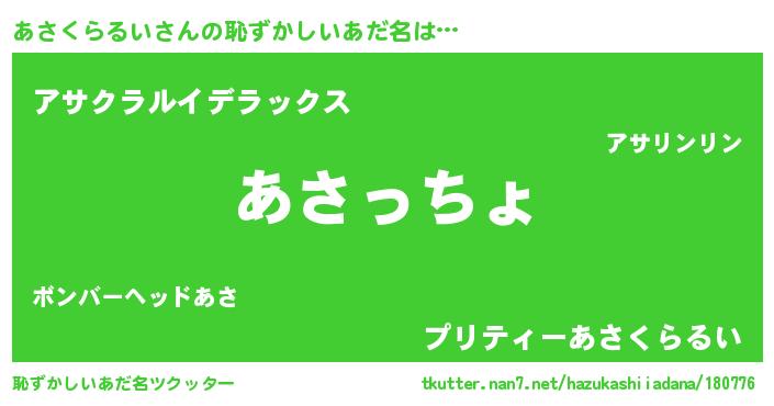 | 意味不明あだ名 | 『あさくらるいフォーエバー』 |