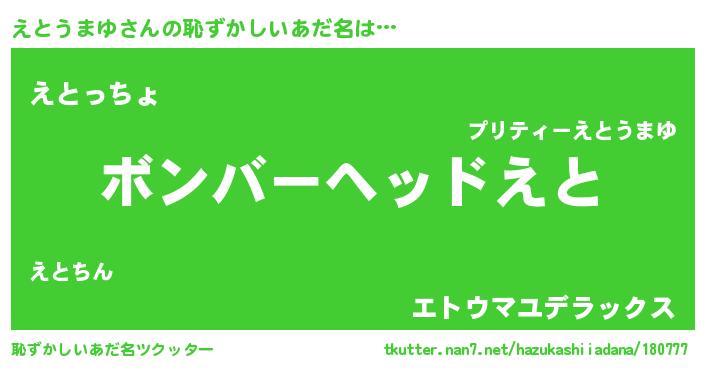 | ヒーロー風カッコイイあだ名 | 『慈愛の使者えとうまゆ』『仮面エトダー』 |