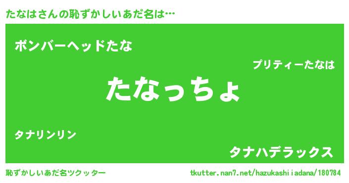 | 意味不明あだ名 | 『たなはフォーエバー』『ニラ科たなは属』 |
