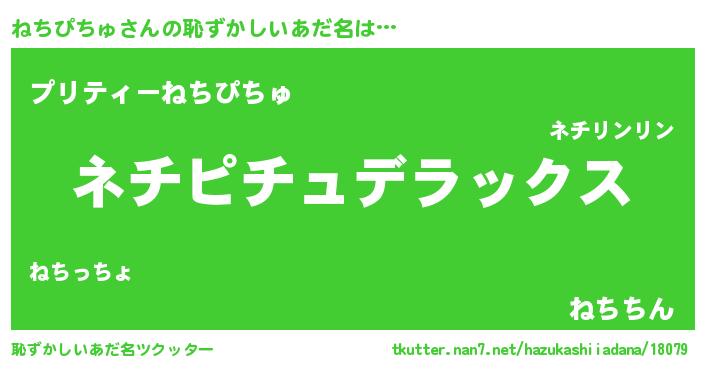 | 男性向けラノベタイトル風あだ名 | 『Re:ねちぴちゅから始める異世界生活』 |