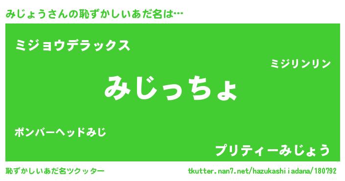 | ヘコむあだ名 | 『酢こんぶ』『みじっふぃ~』 |