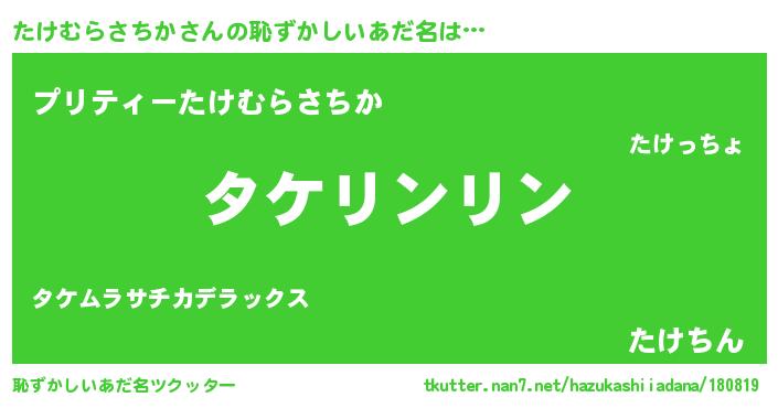 | 男性向けラノベタイトル風あだ名 | 『たけむらさちかの嫁は女の子じゃないと思った?』 |