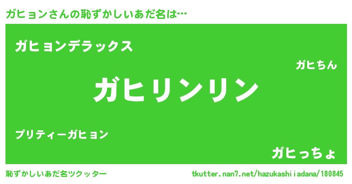 | ヘコむあだ名 | 『ガヒっぺ』『牛乳』『ガヒョン(笑)』 |