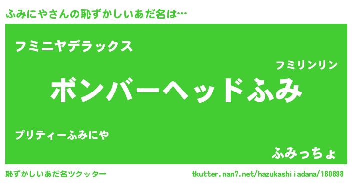 | ヘコむあだ名 | 『つくし』『ふみを』『ふみっふぃ~』 |