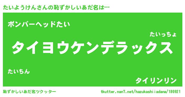 | 意味不明あだ名 | 『自称たいようけん』 |