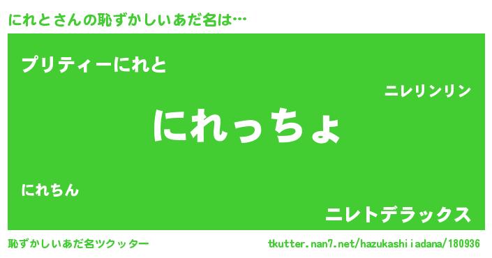 | ポケモン風あだ名 | 『ニレトダネ』『ニレチュウ』 |