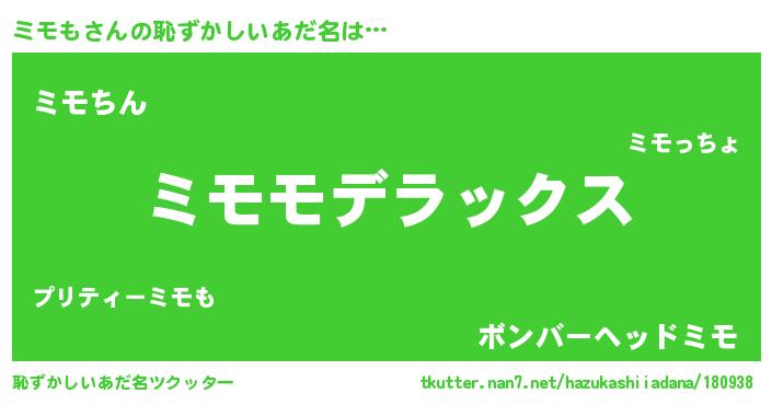| 意味不明あだ名 | 『ヨモギ科ミモも属』『自称ミモも』 |