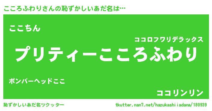 | ヘコむあだ名 | 『ここっふぃ~』『こころふわり(笑)』 |