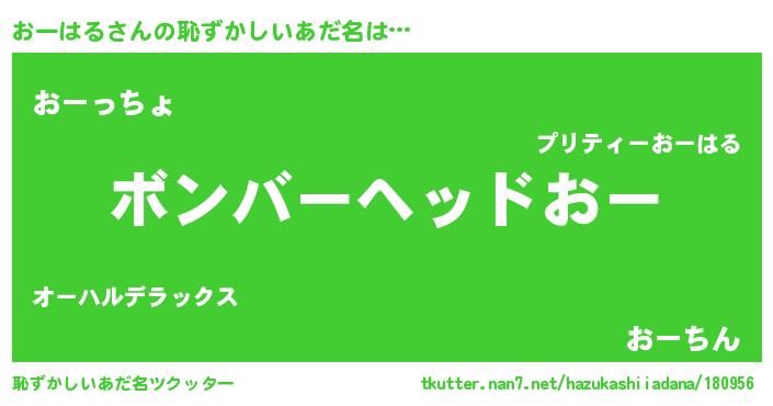 | ヘコむあだ名 | 『豆乳』『おーはる(笑)』『おーにー』 |
