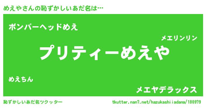 | ヘコむあだ名 | 『めえにゅー』『めえっぺ』 |