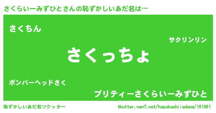 | 欧米人風あだ名 | 『さくらいーみずひと・ステッグマイヤー』 |