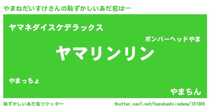 | ポケモン風あだ名 | 『ヒヤマネダイスケ』『メロヤッマ』 |