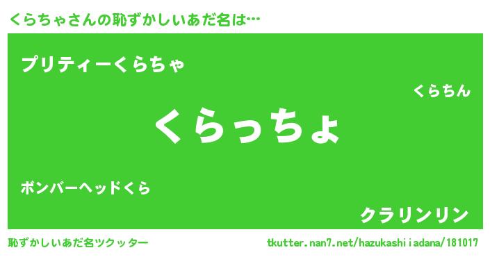 | ヘコむあだ名 | 『牛乳』『くらっふぃ~』『くらお』 |