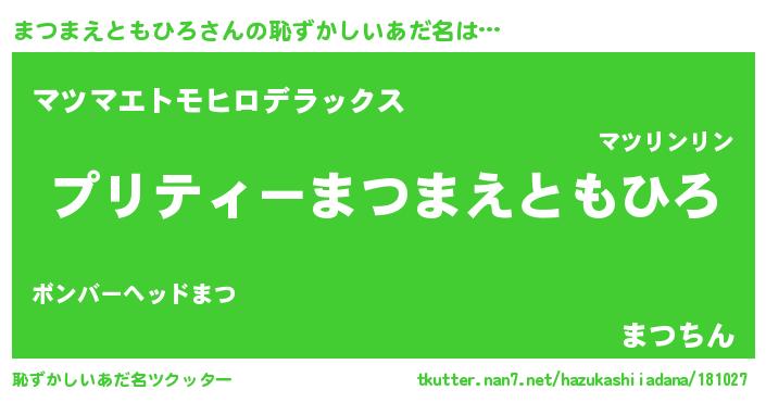 | ヘコむあだ名 | 『まつふぇ~』『まつまえともひろ(苦笑)』 |