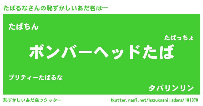 | ヒーロー風カッコイイあだ名 | 『慈愛の使者たばるな』『ネオタバルナ』 |