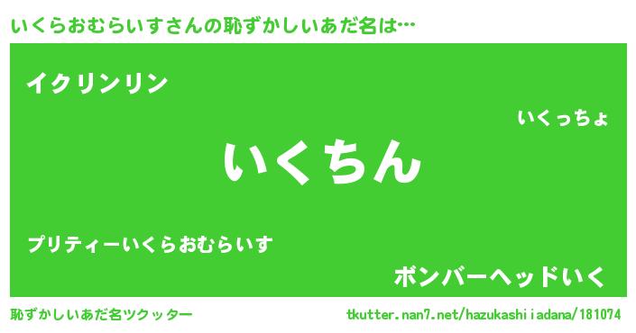 | ヘコむあだ名 | 『いくらおむらいす(震え声)』『いくっぺ』 |
