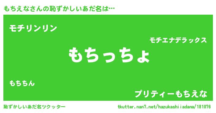 | 意味不明あだ名 | 『もちえなフォーエバー』『自称もちえな』 |