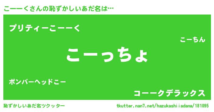 | 意味不明あだ名 | 『こーーくフォーエバー』『自称こーーく』 |