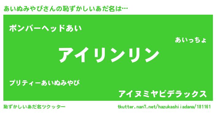 | 意味不明あだ名 | 『とにかく怪しいあいぬみやび』 |