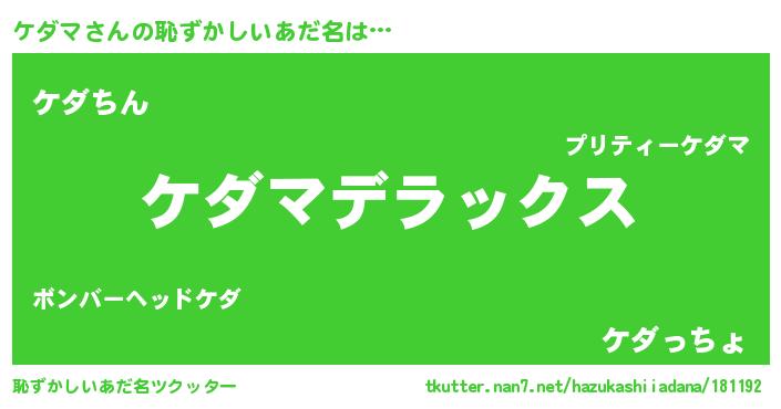 | 意味不明あだ名 | 『自称ケダマ』『永久保存ケダマ』 |