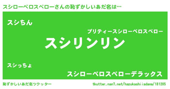 | 意味不明あだ名 | 『とにかく怪しいスシローペロスペロー』 |