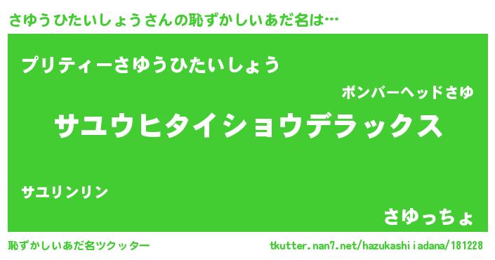 | 意味不明あだ名 | 『自称さゆうひたいしょう』 |
