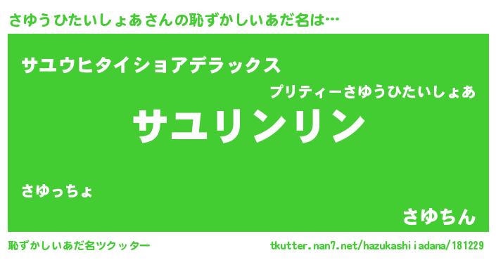 | 意味不明あだ名 | 『とにかく怪しいさゆうひたいしょあ』 |