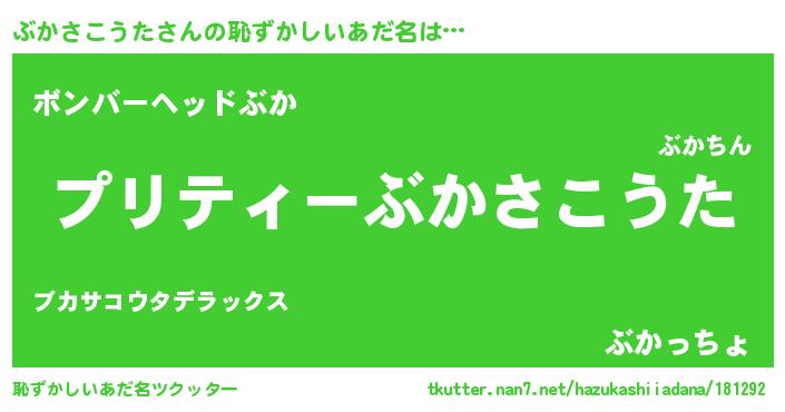 | 男性向けラノベタイトル風あだ名 | 『うちのぶかさこうたが世界を掌握している!』 |