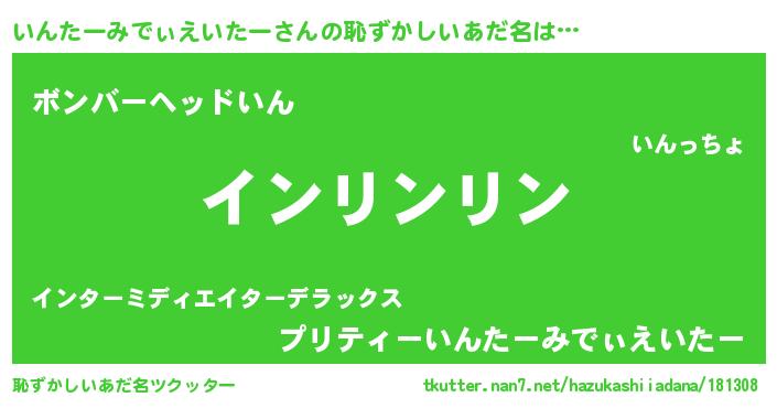 | 意味不明あだ名 | 『とにかく怪しいいんたーみでぃえいたー』 |