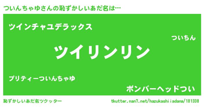| 意味不明あだ名 | 『とにかく怪しいついんちゃゆ』 |