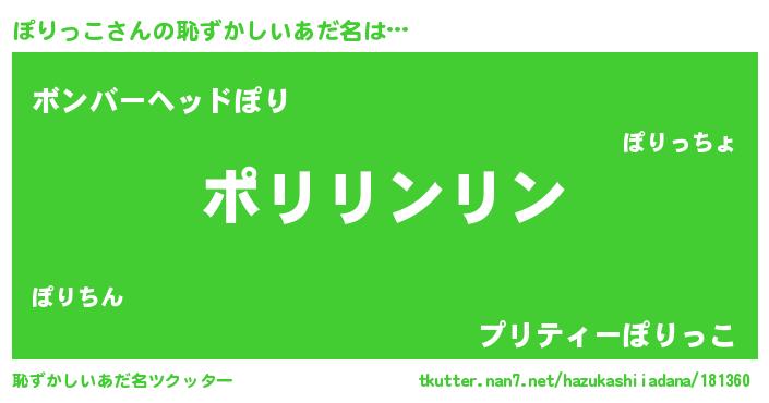 | ヒーロー風カッコイイあだ名 | 『炎刃騎士ポリ』『慈愛の使者ぽりっこ』 |