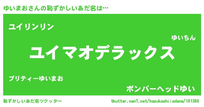 | 意味不明あだ名 | 『自称ゆいまお』『永久保存ゆいまお』 |