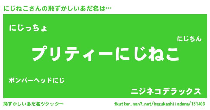 | ヒーロー風カッコイイあだ名 | 『スーパーニジネコ』『仮面ニジダー』 |