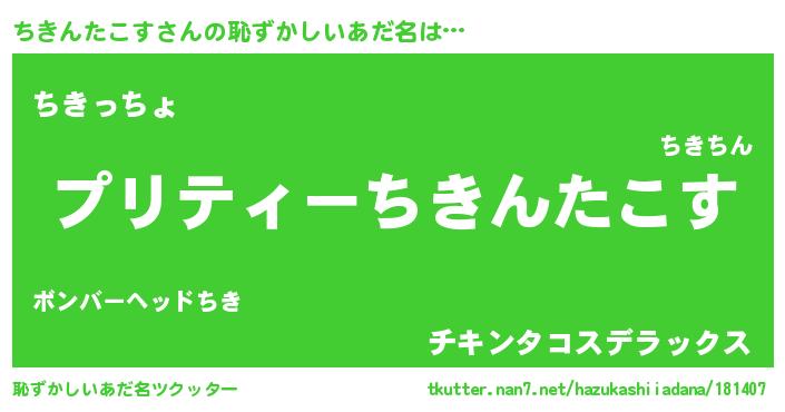 | 肩書あだ名 | 『ちきんたこすCEO』『ちきんたこす少佐』 |