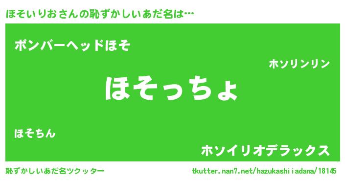 | 意味不明あだ名 | 『ほそいりおフォーエバー』 |