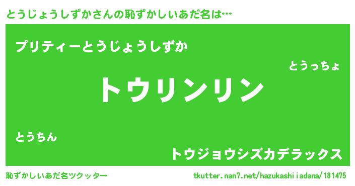| ポケモン風あだ名 | 『ヒトウジョウシズカ』『トウチュウ』 |
