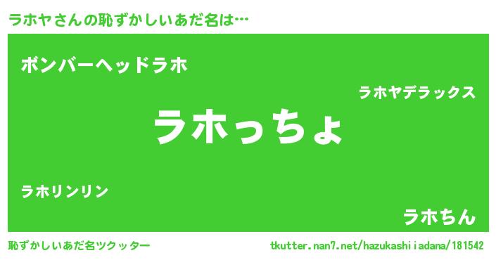 | ヘコむあだ名 | 『豆乳』『ラホヤ(爆)』『ラホぷりん』 |