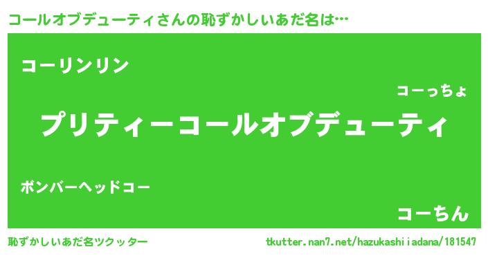 | ポケモン風あだ名 | 『コーチュウ』『ヒコールオブデューティ』 |