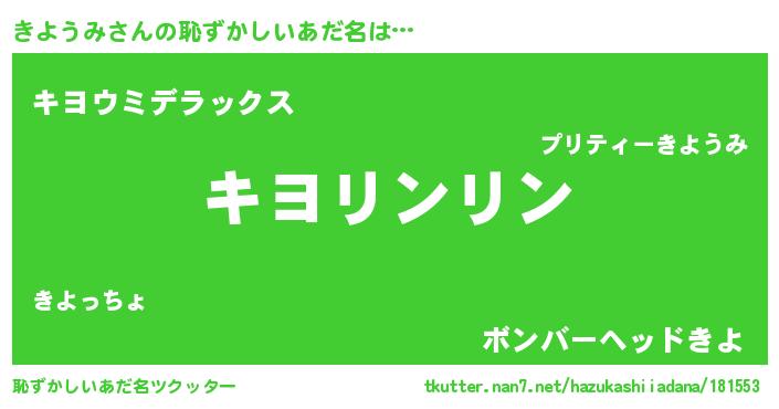 | 欧米人風あだ名 | 『きようみ・ステッグマイヤー』 |