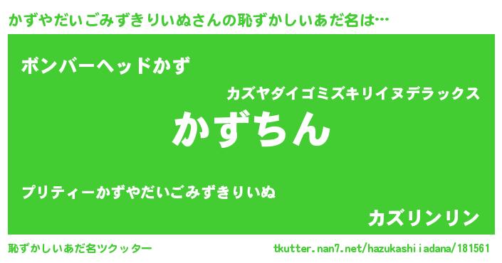 | 意味不明あだ名 | 『永久保存かずやだいごみずきりいぬ』 |