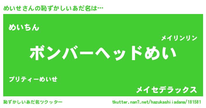| ヘコむあだ名 | 『めいせ(苦笑)』『めいぷりん』 |